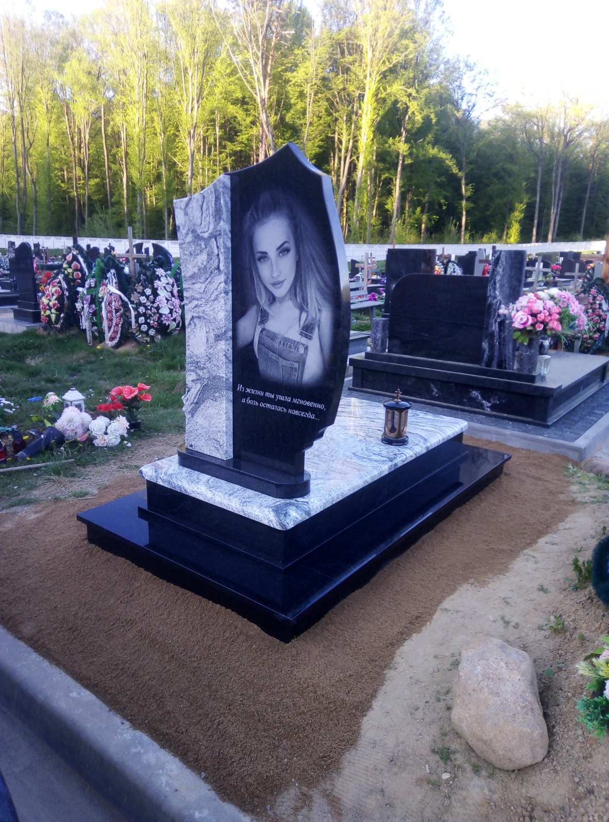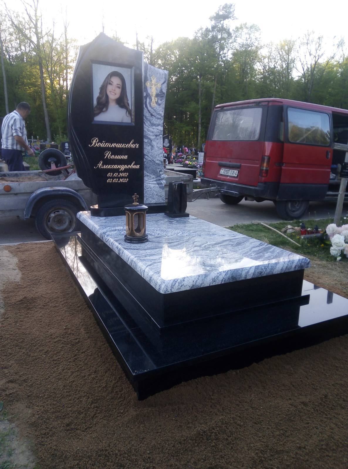 Новый памятник девушке - портрет спереди сделан на закаленном стекле, на обратной строное - гравировка. Гранит - Аврора и Габбро диабаз.