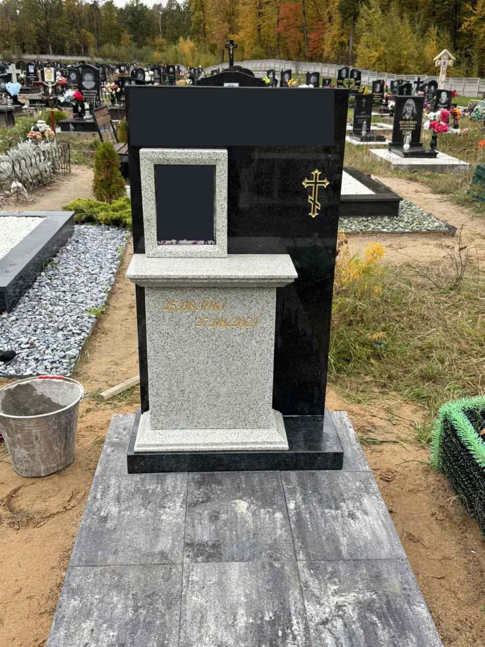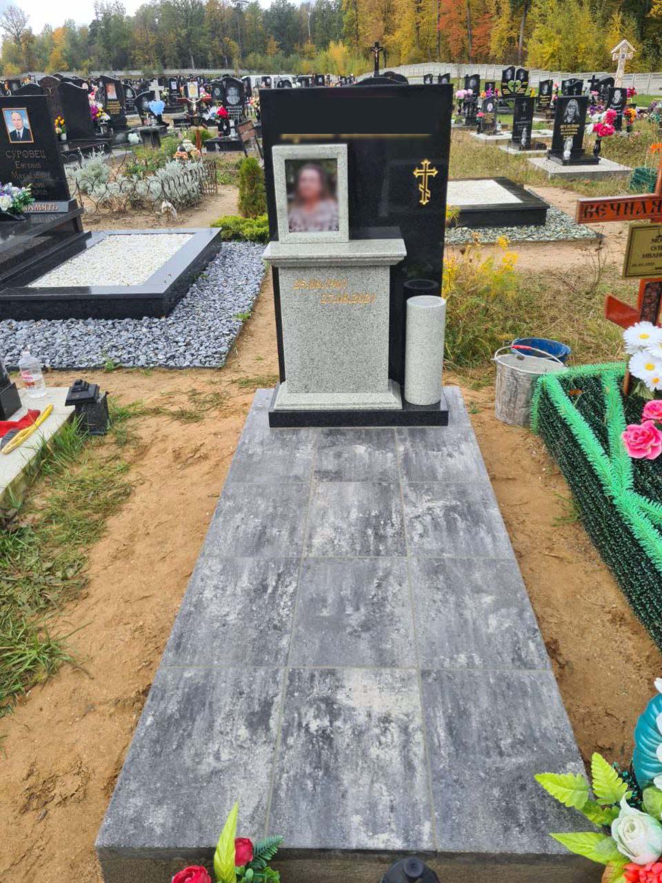Интересный новый проект - памятник из двух видов гранита - Гранична (серый) и Габбро-диабаз (Черный). Надгробие облицовано тротуарной плиткой "колормикс". Рамка для фотографии также из гранита.
