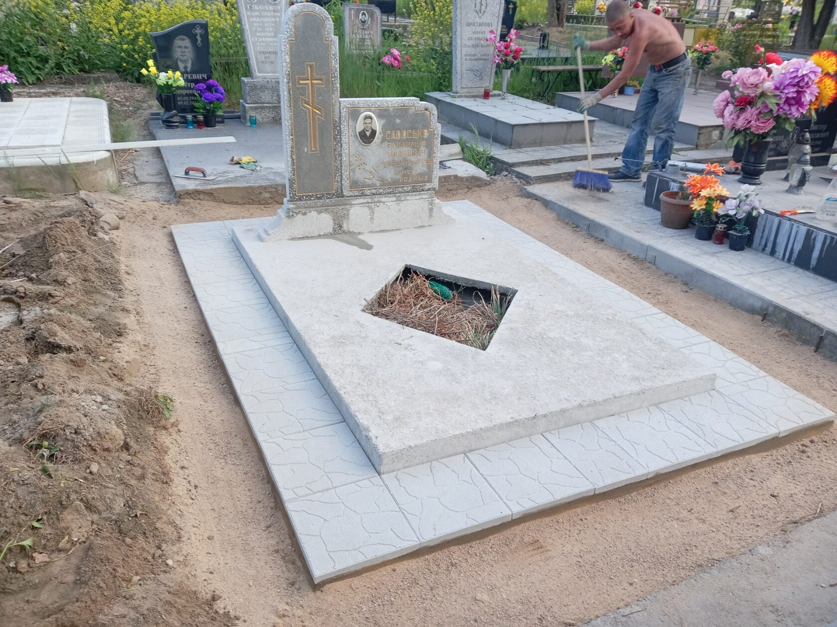 Сделали новый фундамент, облицевали тротуарной плиткой. Стелу почистили, обновили и прокрасили буквы. Вокруг памятника все очистили от сорняков и протравили.